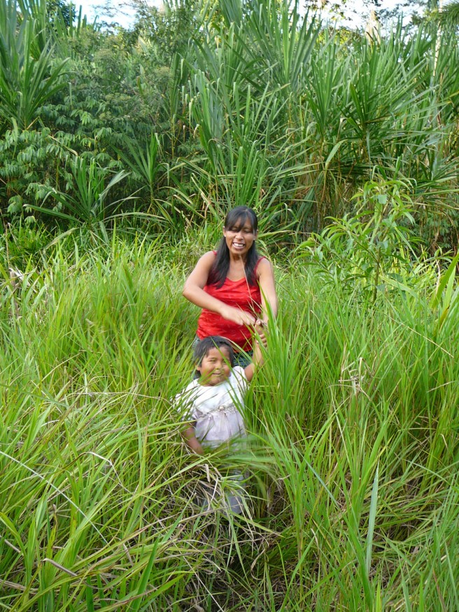 Doris m’emmène jusqu’à une cabane un peu isolée en haut du village de Pilcopata. La famille vend le miel de ses ruches et possède aussi quelques vaches laitières. Ce sont des gens adorables, je suis juste venue me balader sur leurs terres et ils m’offrent des oranges et des fruits de palmiers, c’est incroyable !