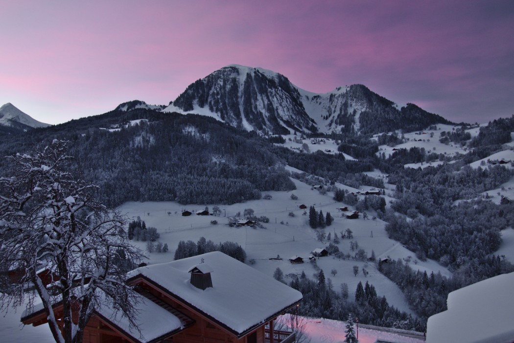 Lever de soleil sur Montagne de Sulenz et la Greffaz depuis Manigod