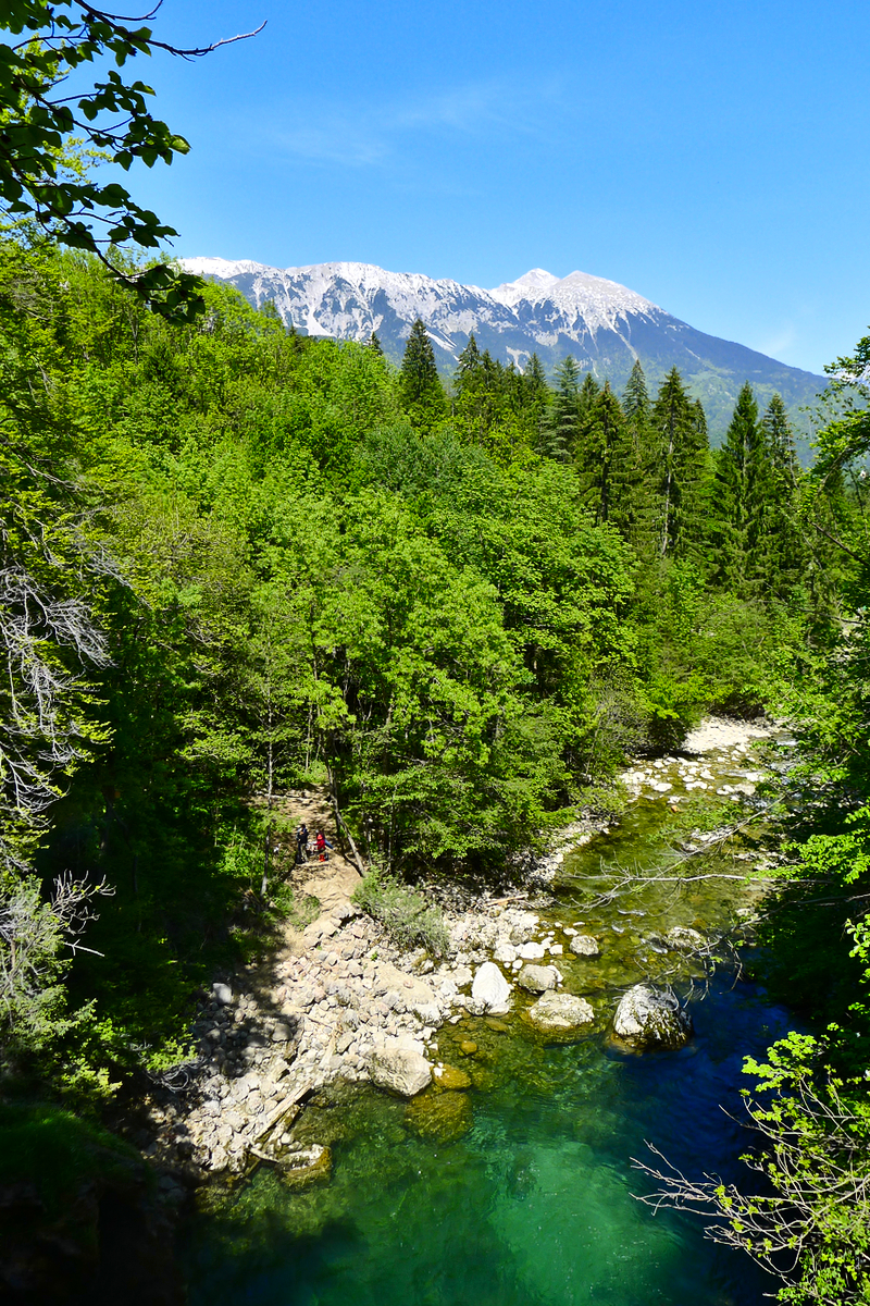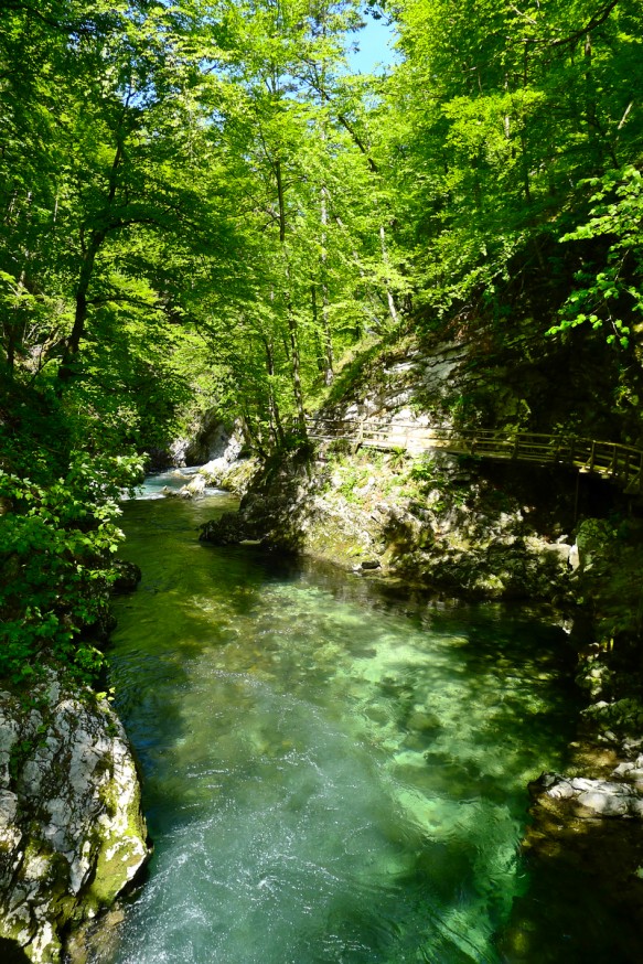 La rivière Radovna est tour à tour tumultueuse et indomptable et calme et sereine. A chaque pas dans les gorges, elle nous offre un visage différent. A l’ombre des grands arbres, l’atmosphère est rafraîchissante et calme. La balade est courte mais invite à la rêverie. On prend son temps, on fait une pause sur chaque petit pont, on se détend. On profite des vacances, tout simplement !